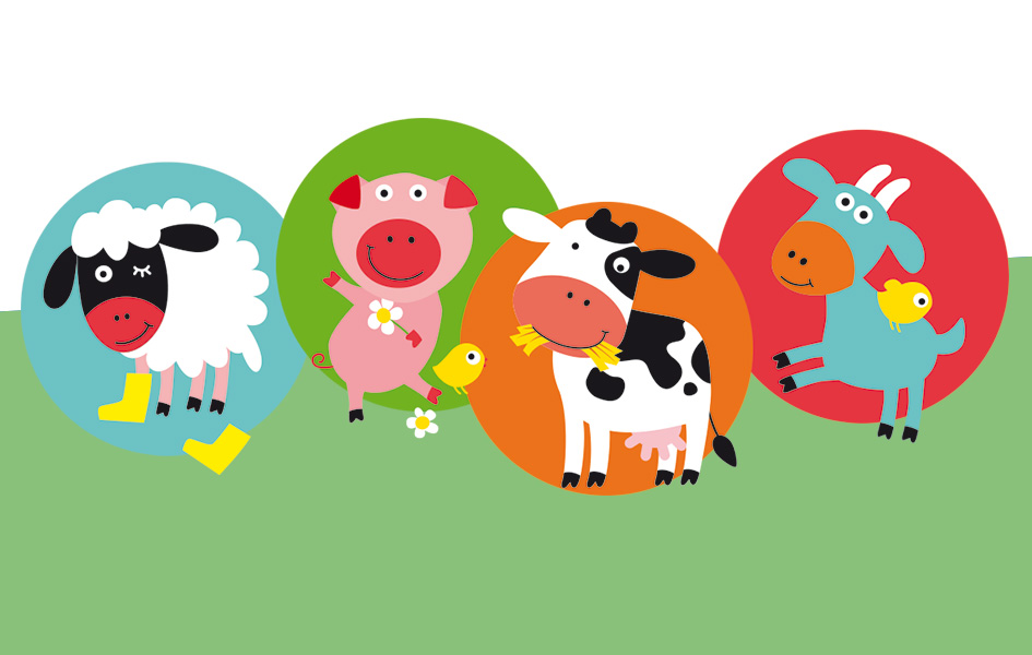 Illustrationen / Charaktere zur Gestaltung von Kinderpartyfamlie "Bauernhoftiere"